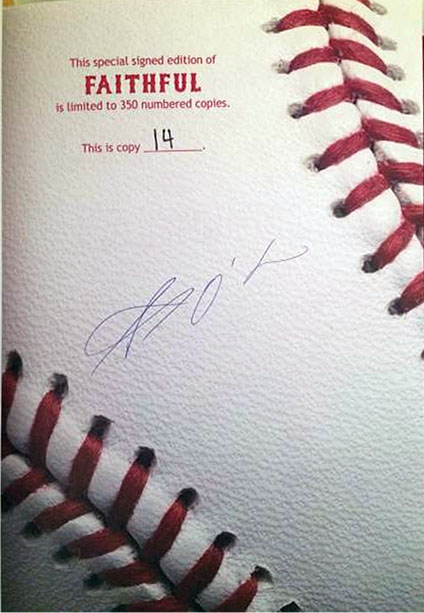 - Lettered Edition: Limited to a one-time printing of 26 hand-lettered copies signed by Stewart O’Nan, printed on a high quality acid free paper stock and featuring a hand-bound “three piece” binding with a special Japanese book cloth and a fine leather, two-color printing throughout the book, a sewn-in ribbon page marker, illustrated endpapers, housed in a deluxe hand-made custom Maple slipcase, and featuring a baseball card signed by a Red Sox player. Issue Price = $750