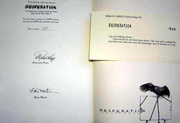 - Limited/Deluxe edition with matching traycase (but no dustjacket) was issued in a print-run of 2,000 signed and numbered copies. The value of this book has not gone up as much as others, perhaps because a combination of a relatively large print-run and the book not being as widely read as some of SK's other books. These copies were signed by Stephen King and Don Maitz $650 - $850