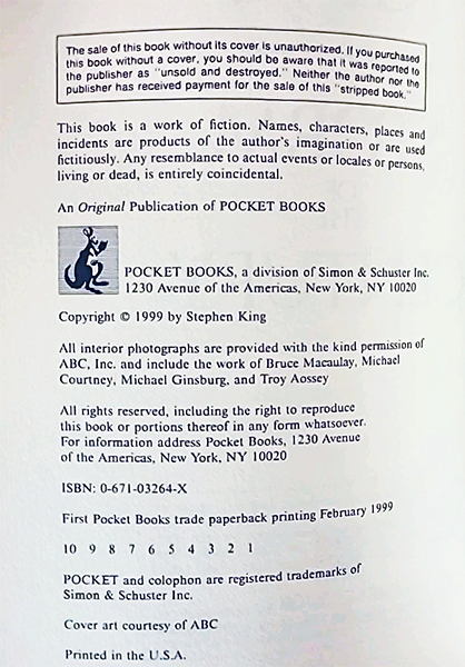 • An oversized trade paperback first edition from Pocket Books. On the copyright page you will see the numbers 10 9 8 7 6 5 4 3 2 1. Issue price $15.00