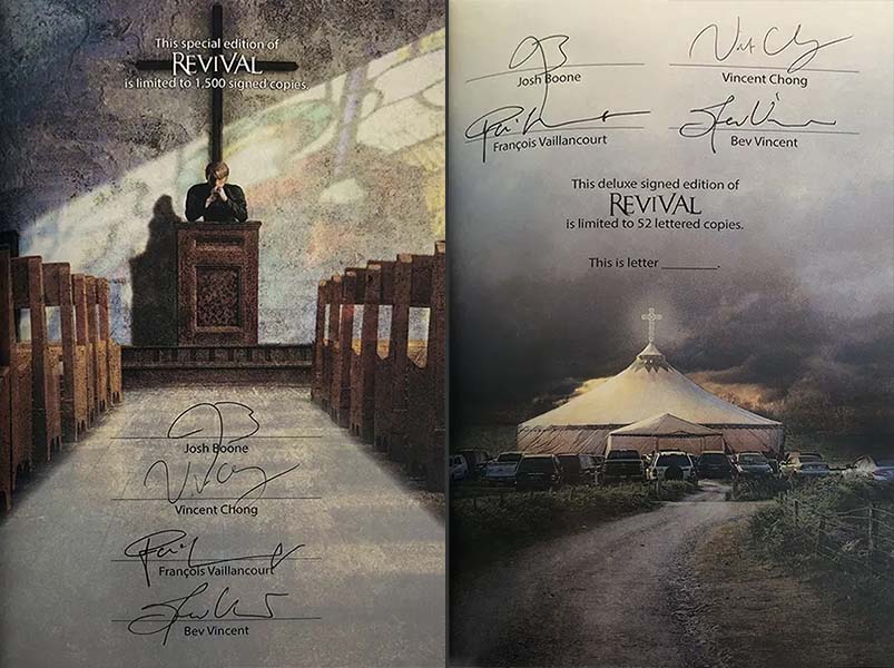 While the 1,500 copy edition is listed as "Limited" on the Letterpress website, it is not individually numbered on the limitation page, nor is it signed by SK. In this sense it is really a gift/artist type edition. I am leaving it as limited in the description of the page to align with the publisher's terminology. However it should not be confused with a typical limited edition that is housed in a traycase, signed by King, and individually numbered on the limitation page.