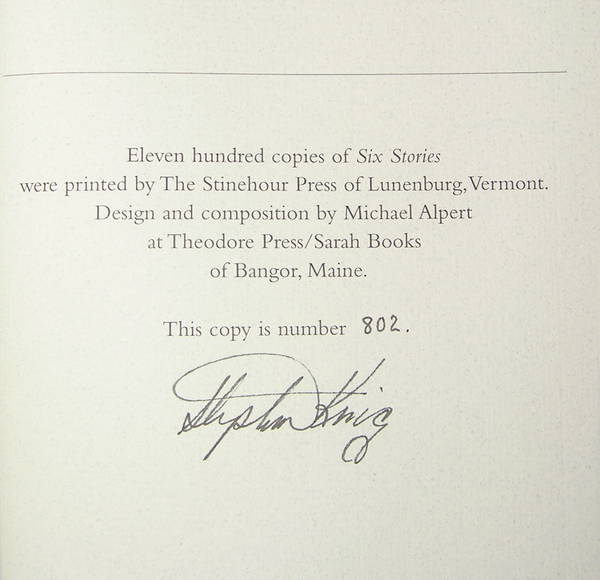 - Arabic numbered edition: Issued for $80 as a limited edition paperback only, this was sold on a first serve basis directly from the publisher, and only these were offered for sale. Signed and numbered by Stephen King $1,500-$2,250