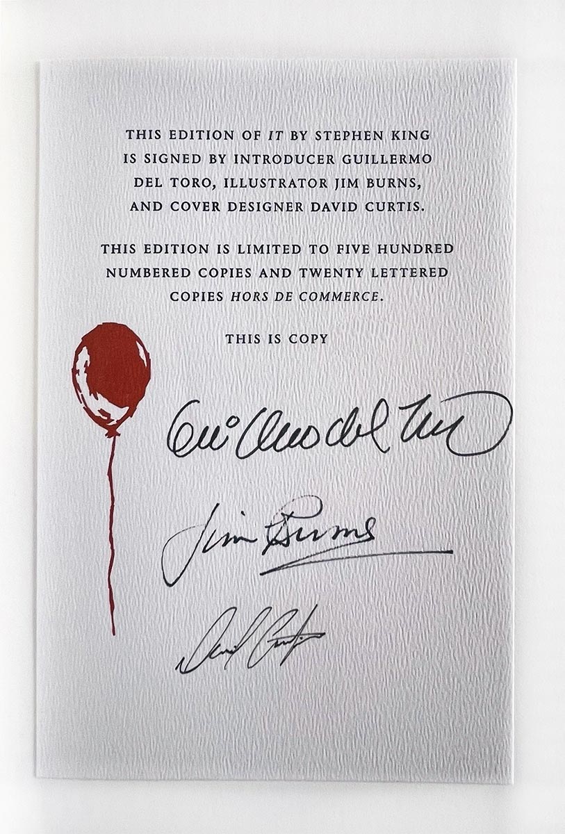 - A limited edition of 500 copies, housed in a traycase - A lavish production with multiple illustrations and premium materials. Some collectors have compared the book quality to the Cemetery Dance lettered edition of IT. However this book is NOT signed by Stephen King and instead is signed on a pasted on book plate by Guillermo del Toro, Jim Burns, and David Curtis. Issue price £590 (approx $825)